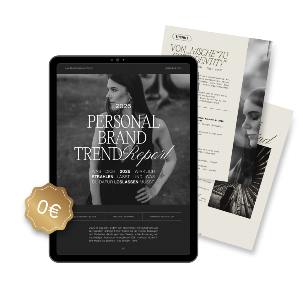Dieser Trend Report zeigt dir, welche Brand-Shifts 2026 entscheidend werden, was du aus 2025 bewusst loslassen darfst und worauf du dich jetzt fokussieren solltest, um mit Klarheit, Identität und echter Wirkung sichtbar zu sein.